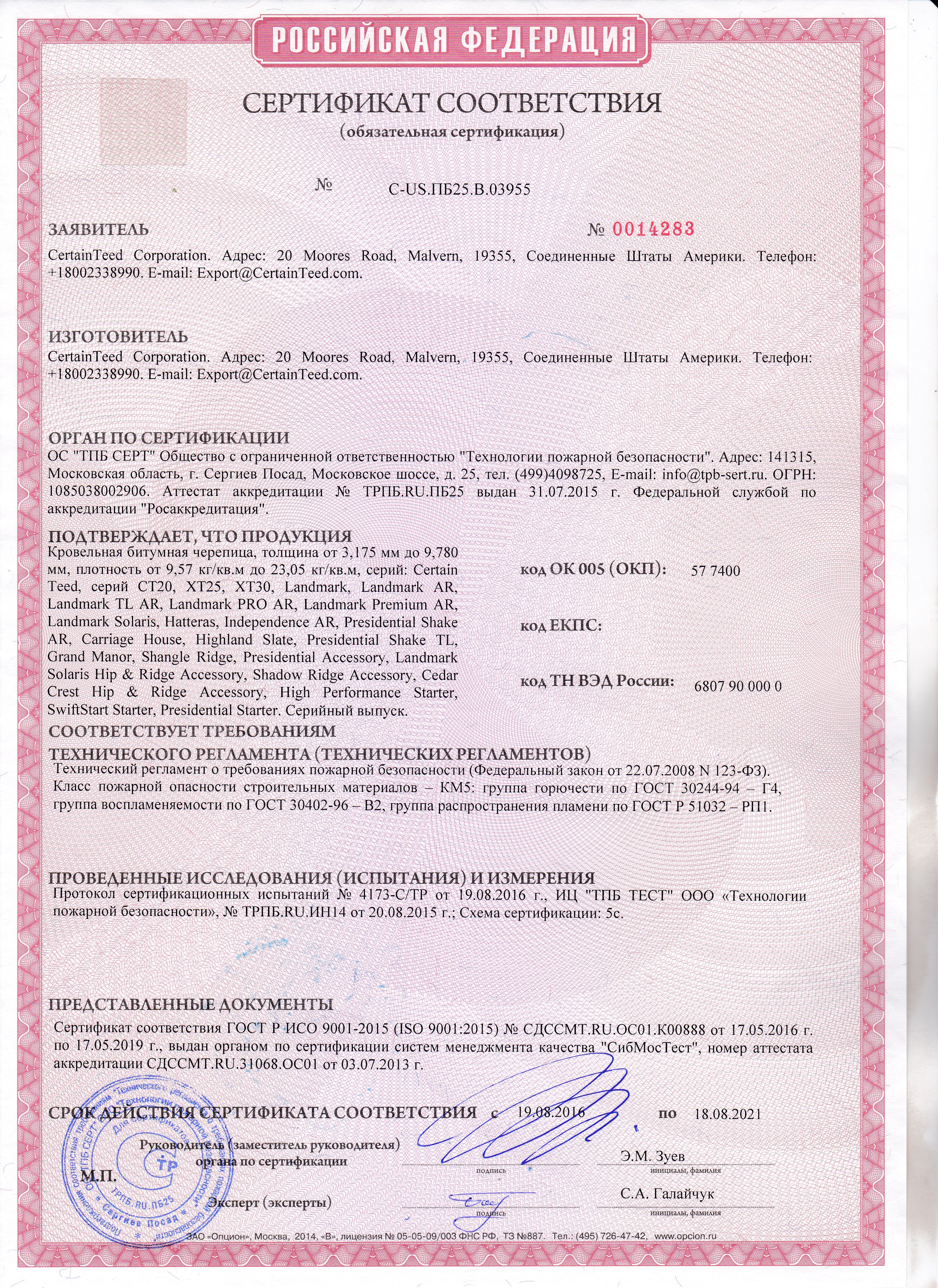 Серия Landmark - классическая американская битумная кровля. Двухслойная ламинированная гибкая черепица от компании CertainTeed.